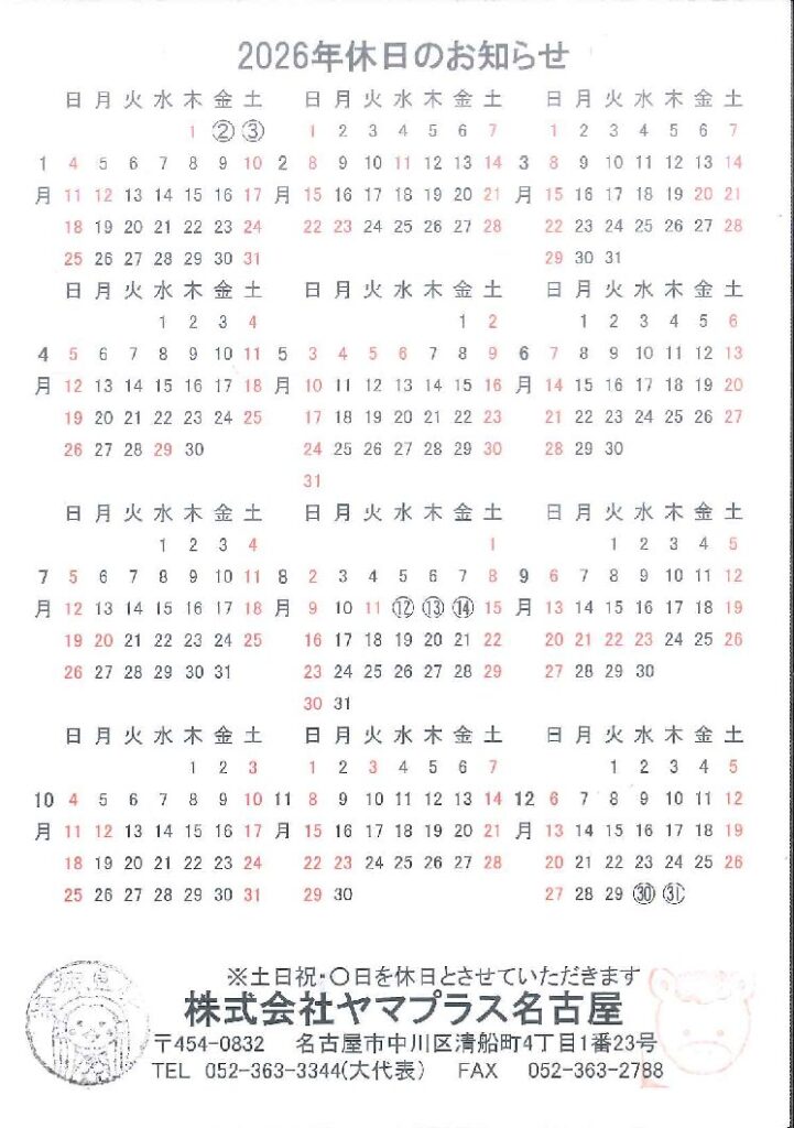 弊社の年末年始、2026年休業日は下記の通りとさせていただきます。